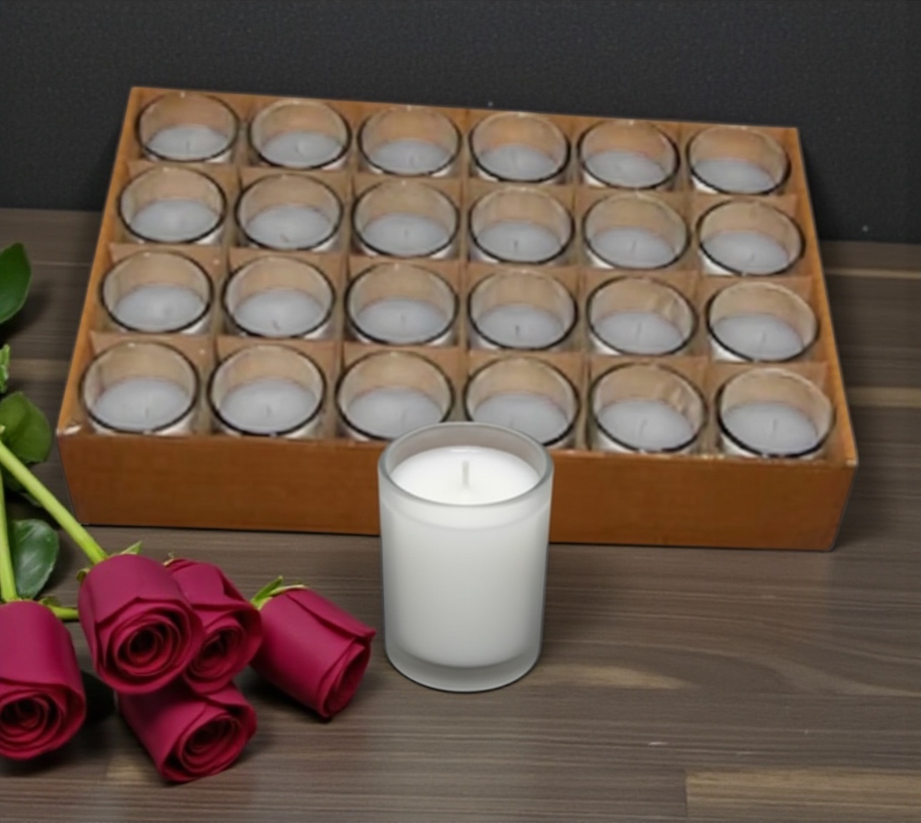 Votive Candles in Frosted Glass Cylinder, White – 25/bx